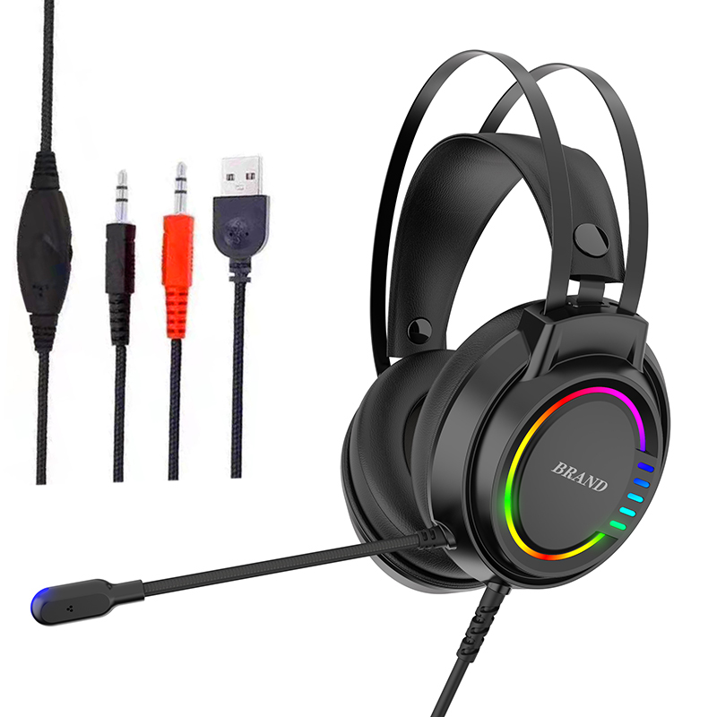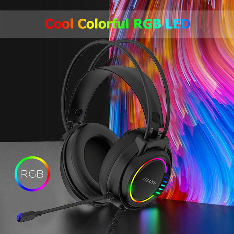 LS-G06 Internet Bar Durable 7.1 Sound Channel RGB Light Over Ear Gaming Headsets with Boom Microphone