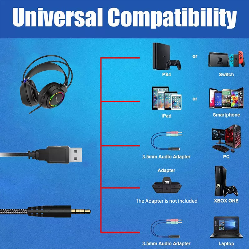 This gaming headset has big earmuff, comforable to wear, cool RGB light, We can customize 7.1 sound channel, your logo, package, color, etc. CE, ROHS certificates are in hands. If need sample to test, welcome to contact Shenzhen Lishen Tech